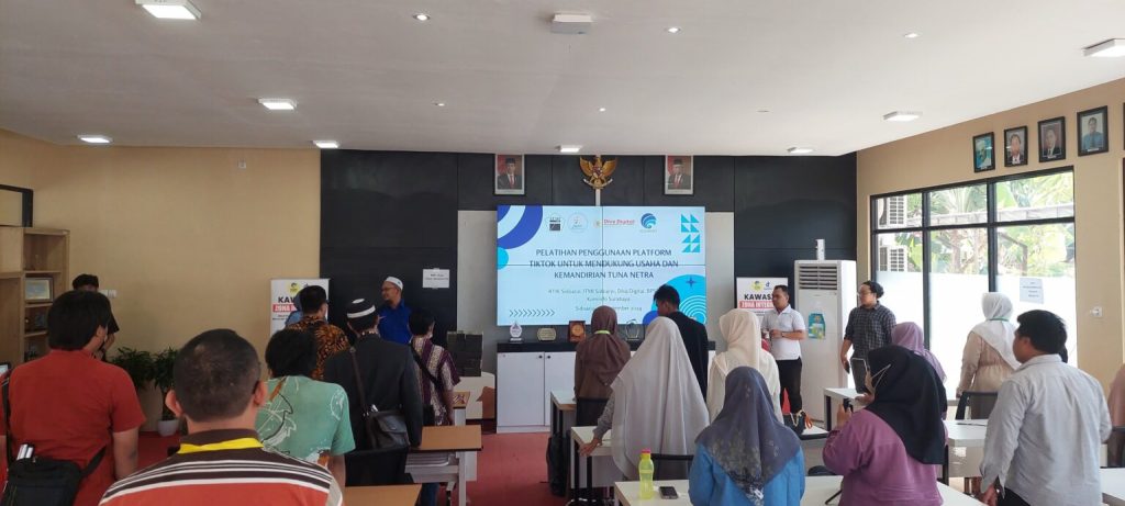 Sidoarjo, Sabtu, 14 September 2024 – Relawan TIK Sidoarjo bekerja sama dengan Ikatan Tuna Netra Muslim Indonesia (ITMI), Diva Digital, dan BPSDMP Kominfo Surabaya menggelar pelatihan bertema “Penggunaan Platform TikTok untuk Mendukung Usaha dan Kemandirian Tuna Netra.” Acara ini berlangsung di Rumah Inovatif BPSDMP Kominfo Surabaya dan dihadiri oleh 25 peserta dari ITMI Sidoarjo dan Surabaya.